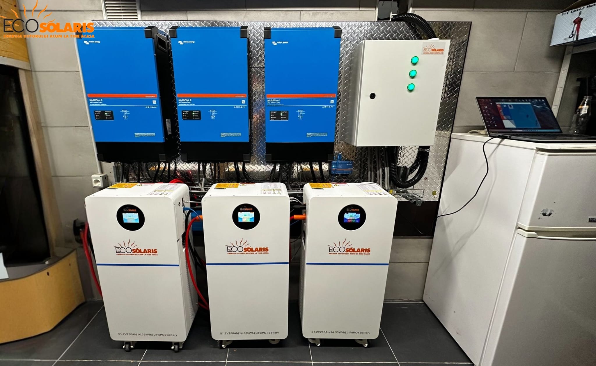Sistem fotovoltaic trifazat 10 kWh pentru locuințe și afaceri. Echipamente Victron, EcoSolaris și Bauer – energie sigură, curată și eficientă.