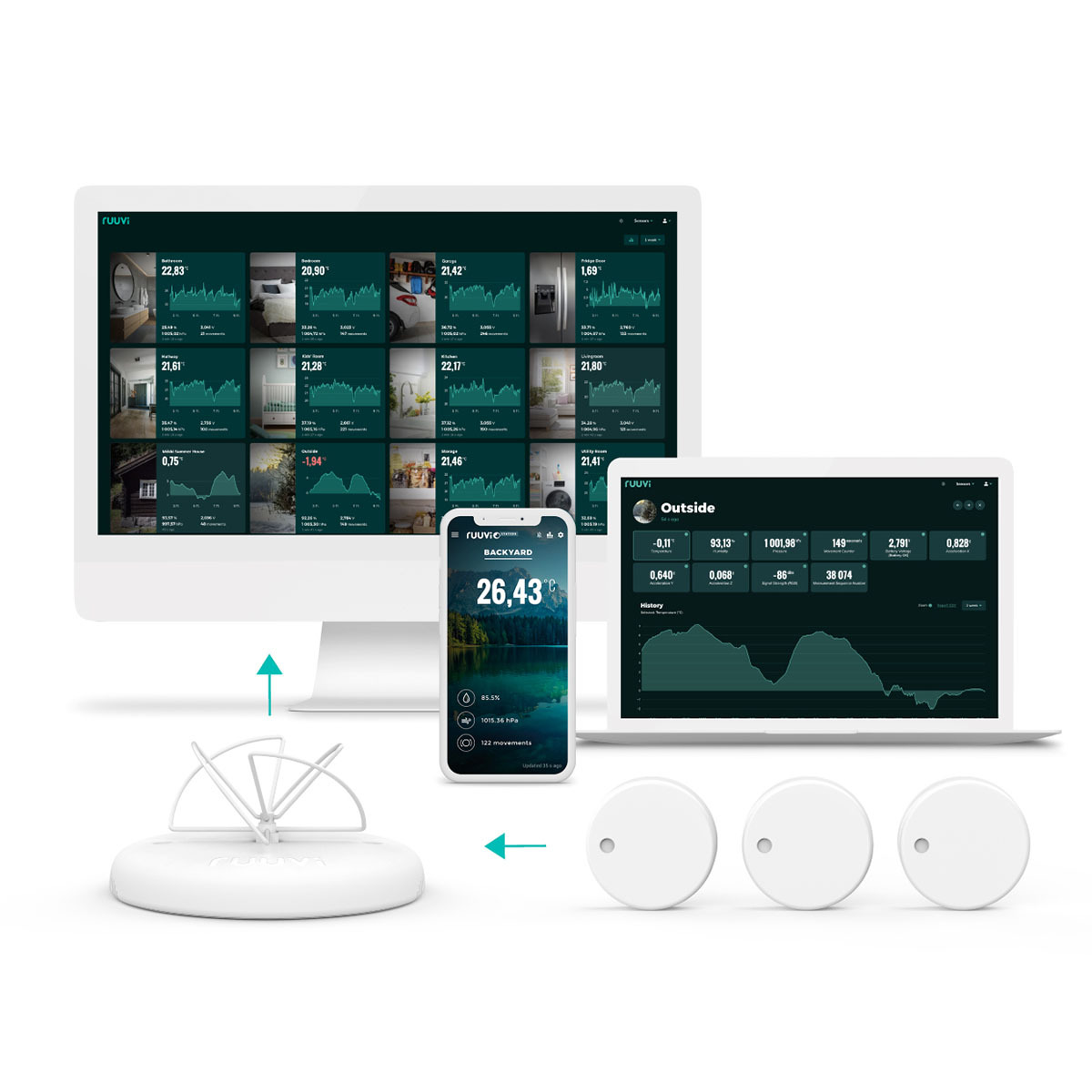 Compatibilitate: Funcționează cu toți senzorii RuuviTag, vechi și noi.